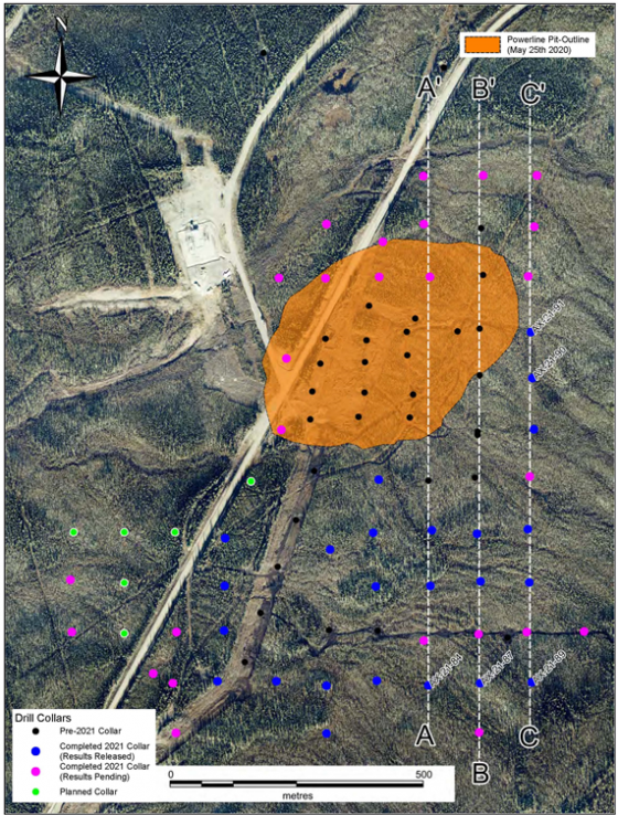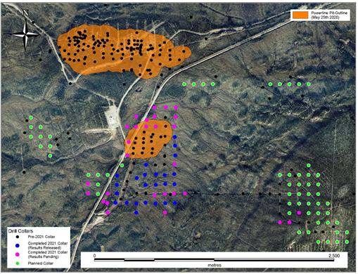 Figure 2: Plan map of Powerline Zone 2021 drill holes reported, planned and completed