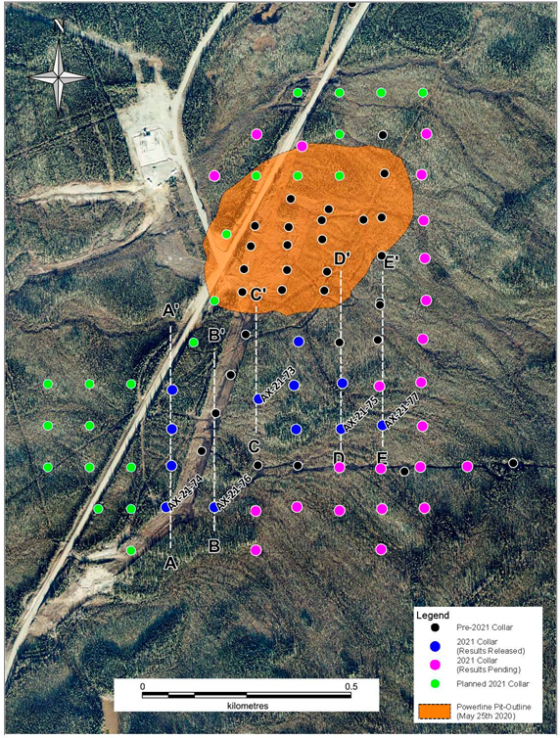 Figure 1 shows the current status of the 2021 drill program at Powerline and Aurex Hill. The locations of drill holes presented in this news release are shown on Figure 2 and sections with results are shown in Figures 3-7. Tables of complete results with collar locations are located on our website and will be updated regularly to include new results.