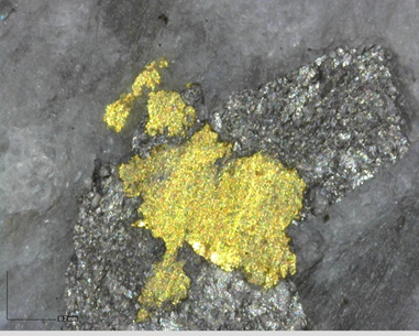 Image 1: Photograph of visible gold at 69.6 m in hole AX-21-75 (17.9 g/t Au over 0.6 m).