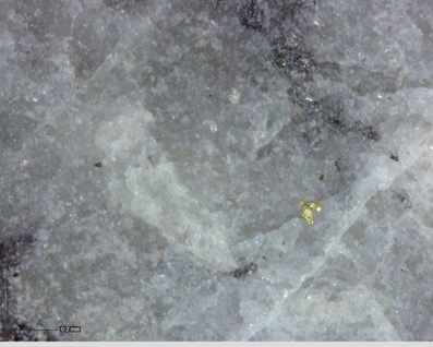 Image 1: Showing a photograph of visible gold from Hole AX-21-79, which assayed 4.0 g/t over 1.5 m from 88.4 m.