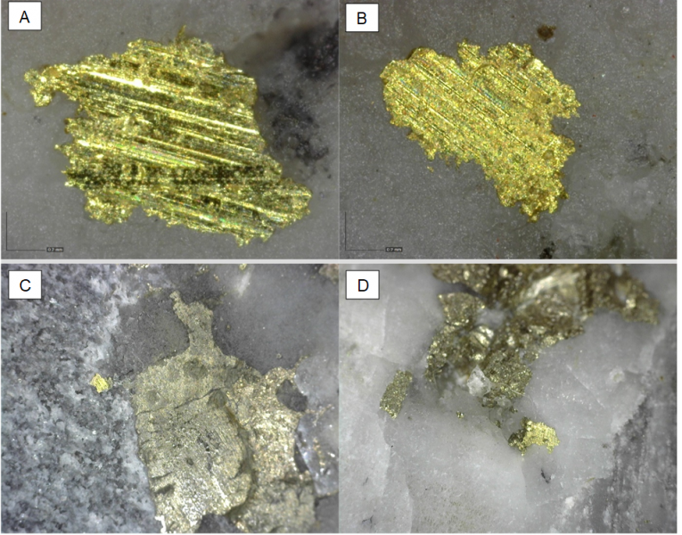 In 2021, step-out drilling to the east and west of the Powerline Deposit identified a near/on-surface gold trend that is interpreted to have grade continuity over 1.2 kilometres of strike length (see Banyan’s news release dated January 10, 2022). A section of this zone has been drilled at 25 m centres, along cardinal and intercardinal directions, over a 200 m x 200 m area to test the continuity of mineralization along strike and down dip, which will be used to refine the geological/mineralization model of the Powerline Deposit in advance of an updated mineral resource estimate the Company is planning to complete in Q2- 2022. Results from the Powerline Deposit received to date are summarized separately in Table 2 and their locations are shown in Figure 2. Visible gold from four (4) of these holes is shown in Image 1.