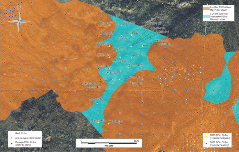 VANCOUVER, BC, July 19, 2023 - Banyan Gold Corp. (the “Company” or “Banyan”) (TSX-V: BYN) (OTCQB: BYAGF) is pleased to release the results from twenty-five (25) diamond drill holes from the Company’s ongoing 2023 exploration campaign. These drill holes establish that the gold mineralization is continuous between Powerline and Aurex Hill deposits located on the Company’s AurMac Property (the “Property”), Yukon Territory.