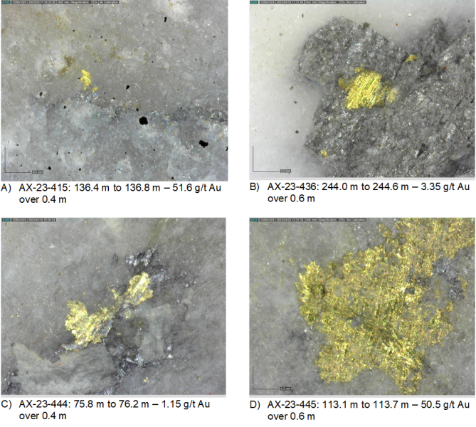 - AX-23-451: 17.7 m of 1.44 g/t Au from 141.1 m