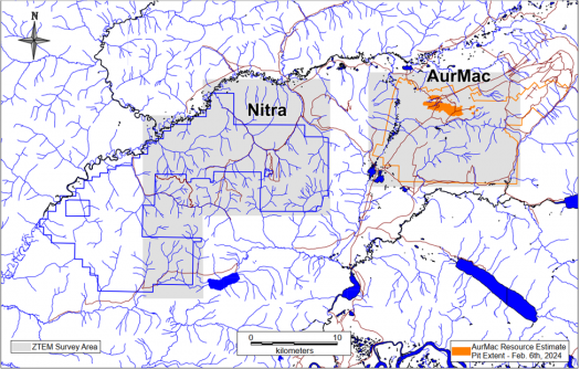 Figure 1. Extent of ZTEM Survey for AurMac and Nitra Projects