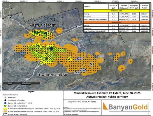 Vancouver, August 20, 2024, Banyan Gold Corp. (the"Company" or "Banyan") (TSX-V: BYN) (OTCQB: BYAGF) announces the filing of the Technical Report to support the updated Mineral Resource Estimate (“MRE”) in accordance with the Canadian Institute of Mining, Metallurgy and Petroleum (“CIM”) Definition Standards incorporated by reference in National Instrument 43-101 (“NI 43-101”) for the AurMac Project (the “AurMac Property" or “AurMac”). The Technical Report titled “Technical Report, AurMac Property, Mayo Mining District, Yukon Territory, Canada” and dated August 20, 2025, was prepared by Marc Jutras, P.Eng., M.A.Sc., Principal, Ginto Consulting Inc., Tysen Hantelmann, P.Eng., of JDS Energy & Mining Inc. and Deepak Malhotra, PhD., of Forte Dynamics. The Technical Report is available for review on SEDAR+ at www.sedar.ca and on the Company’s website at www.banyangold.com.
