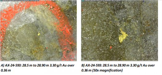 Image 1: Photograph of Visible Gold from Airstrip Deposit Drillholes: