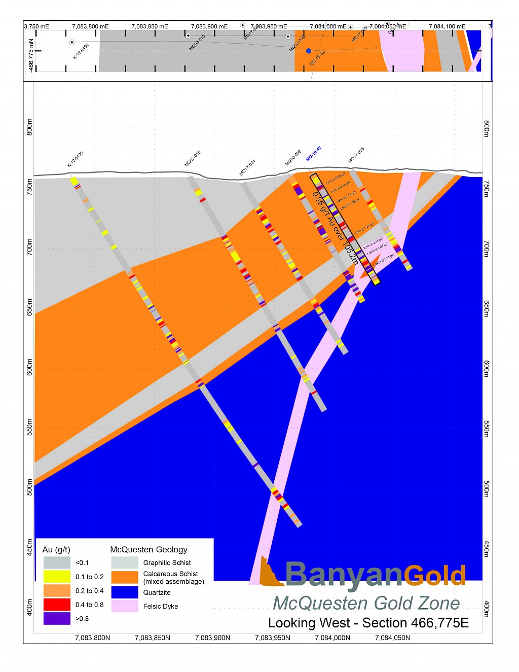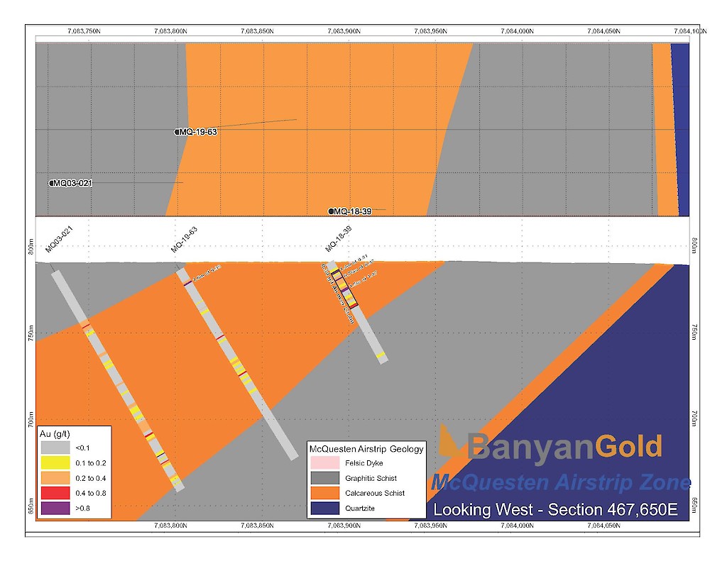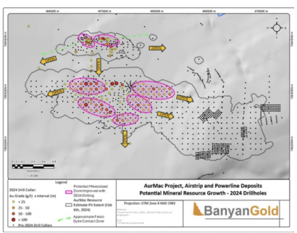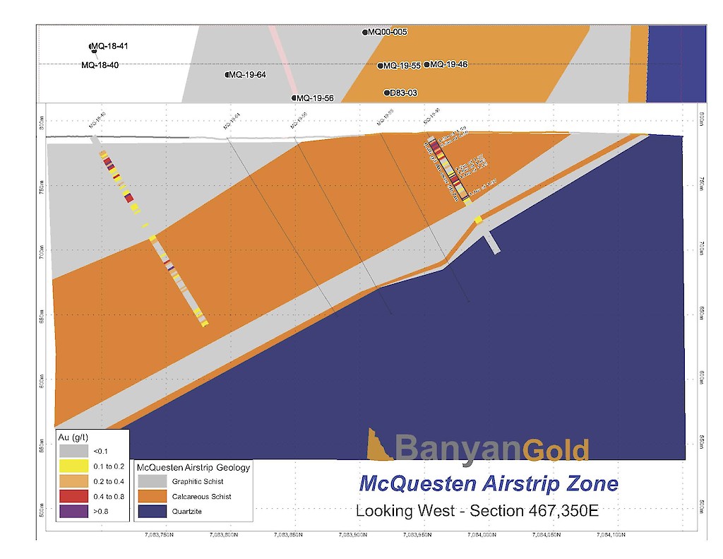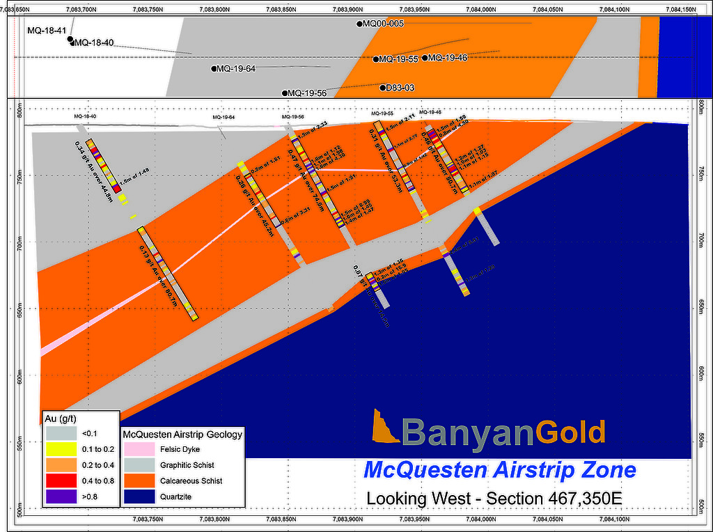 In 2017, Banyan carried out its inaugural exploration program on the consolidated AurMac Property. On the McQuesten Claim Block 317 soil samples were collected to expand on the surface geochemical dataset, five (5) additional trenches totalling 342 metres (“m”) tested historic trenching data and Au-in-soil anomalies, six diamond drillholes (913 m) targeting mineralization through the Airstrip Zone, and 181 line-kilometres of airborne radiometric and magnetic surveying was completed. Work was also completed on the Aurex Hill Zone consisting of 695 soil samples, highlighting a positive Au-Bi correlation, and four diamond drillholes (509 m) targeted anomalous intercepts form 1994 and 1995 rotary air-blast drilling.