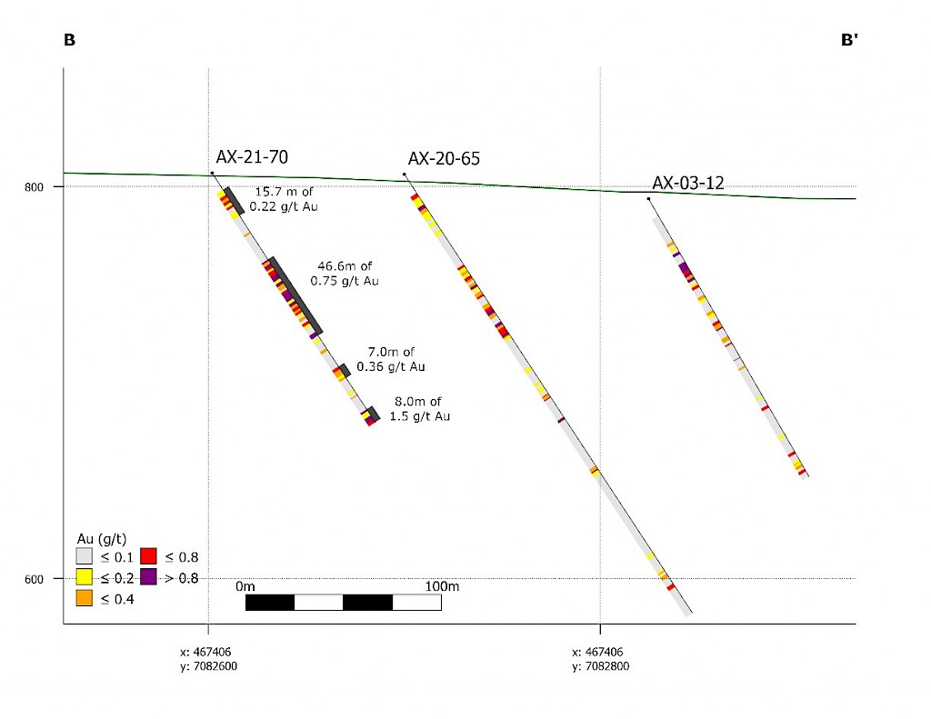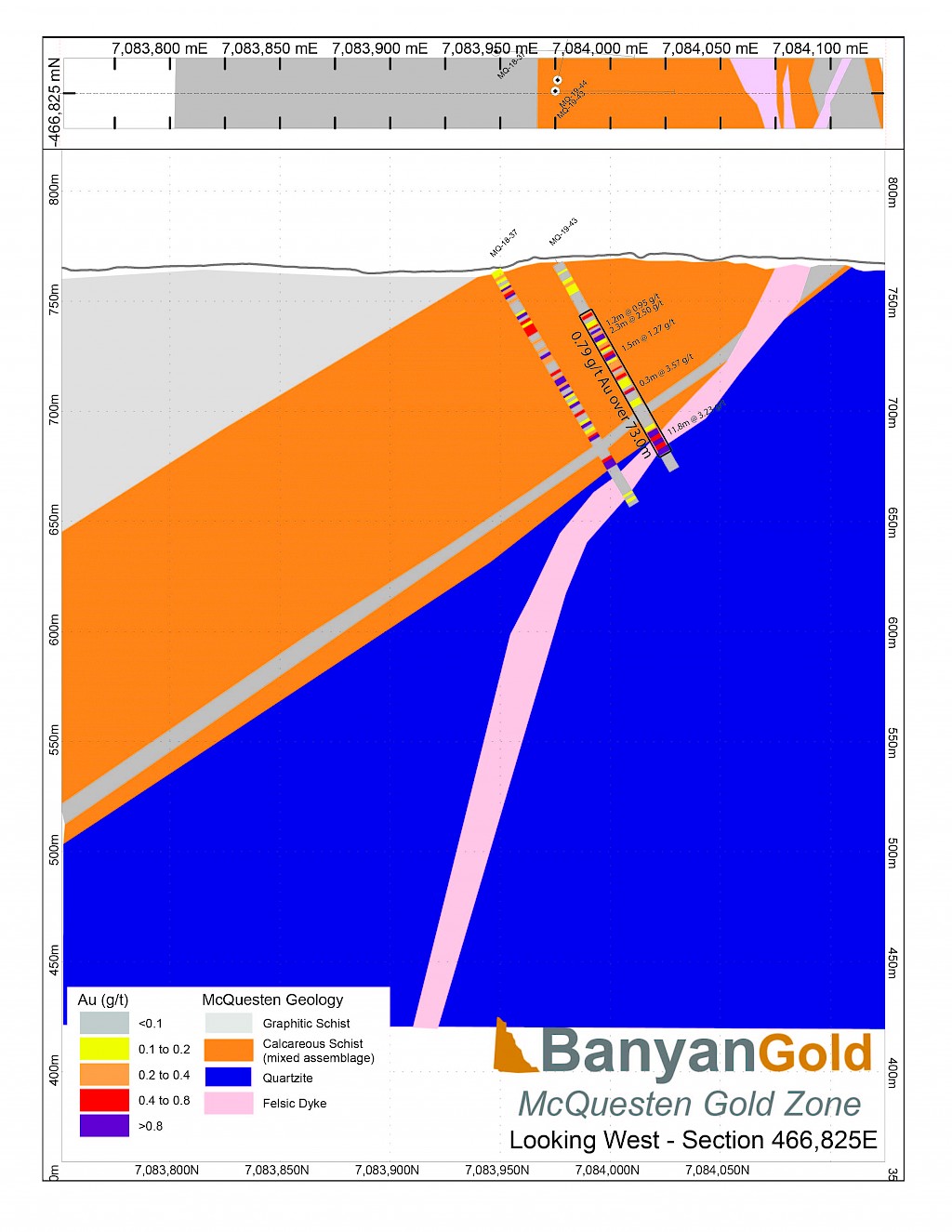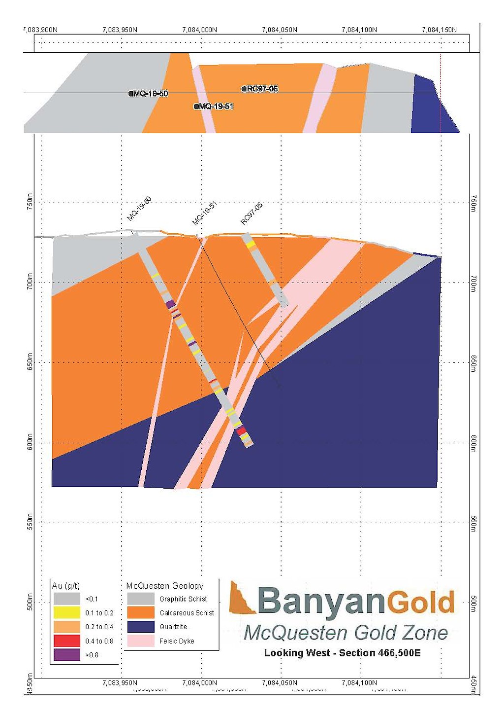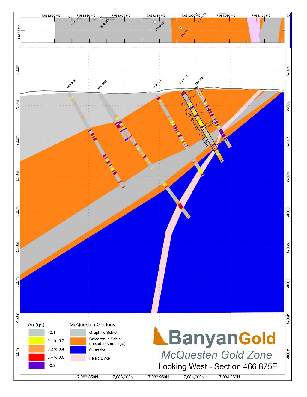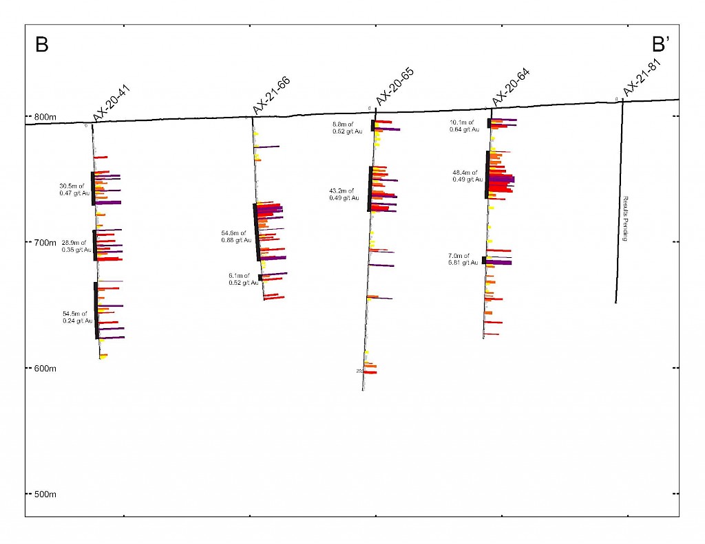 Banyan Gold Corp.’s 2022 field season commenced in late-January 2022 and consisted of approximately 50,000m of diamond drilling. Step-out drilling continued in the Powerline and Aurex Hill Zones to expand both of their mineralization footprints. In Aurex Hill, a total of 54 diamond drill holes (9,073 m) were drilled, with three holes (573 m) targeting anomalous Au is historic reverse-circulation drillholes located in the eastern portion of the zone. In the Powerline Zone, one-hundred and fifteen (115) step-out diamond drillholes (28,034m) were completed to the east and west of previous drilling bringing the total footprint width from 1.75km to its current 2.5 km.