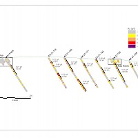 Further drilling was carried out in the same year to again infill around higher-grade intercepts in the Airstrip Zone and to step-out from known mineralization in both Airstrip and Powerline Zones to increase their mineralization footprints. In the Airstrip Zone, thirty-two diamond drillholes were drilled (6,087 m), with ten drillholes (1,568 m) designed for infill and twenty-two drillholes (4,519 m) intended for step-outs. In the Powerline Zone, 25 diamond drillholes (4,547 m) were completed, stepping out from previous drilling.