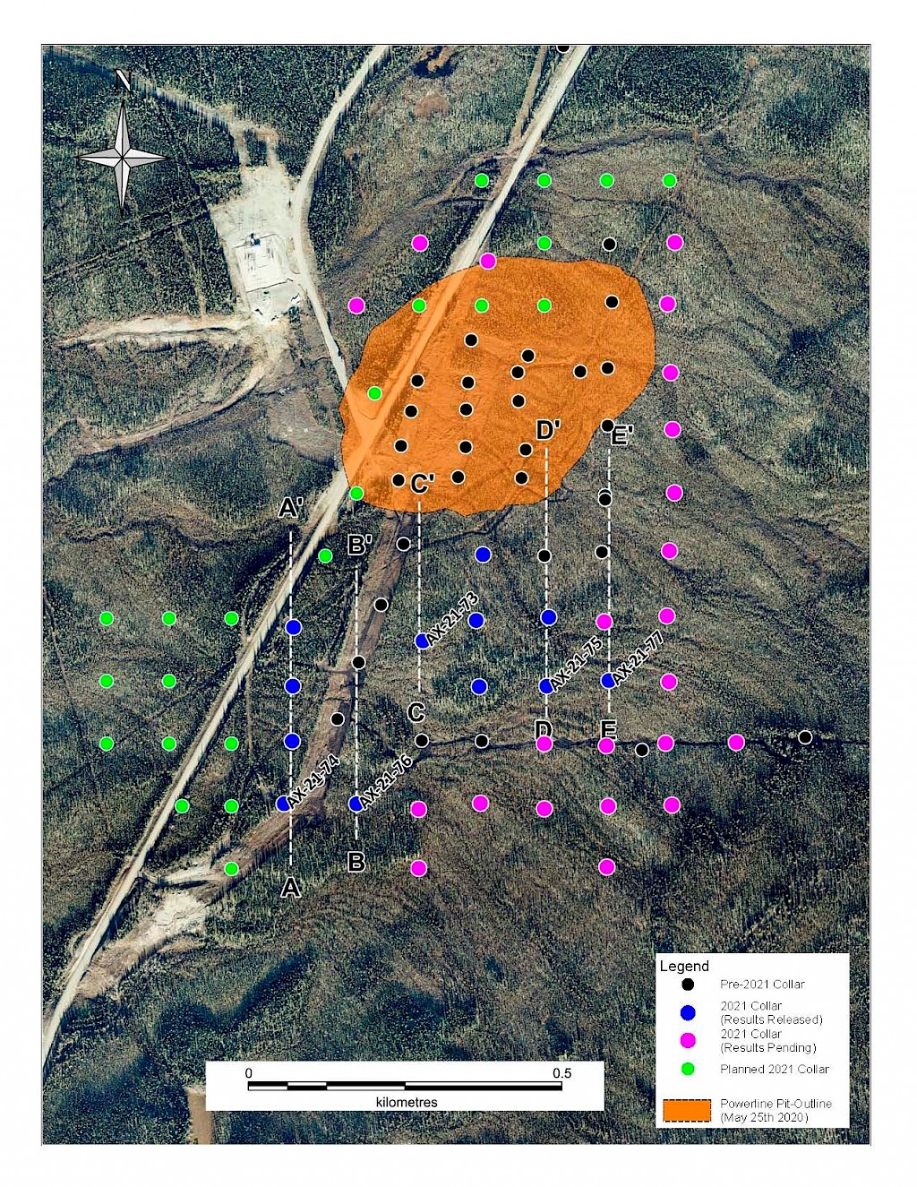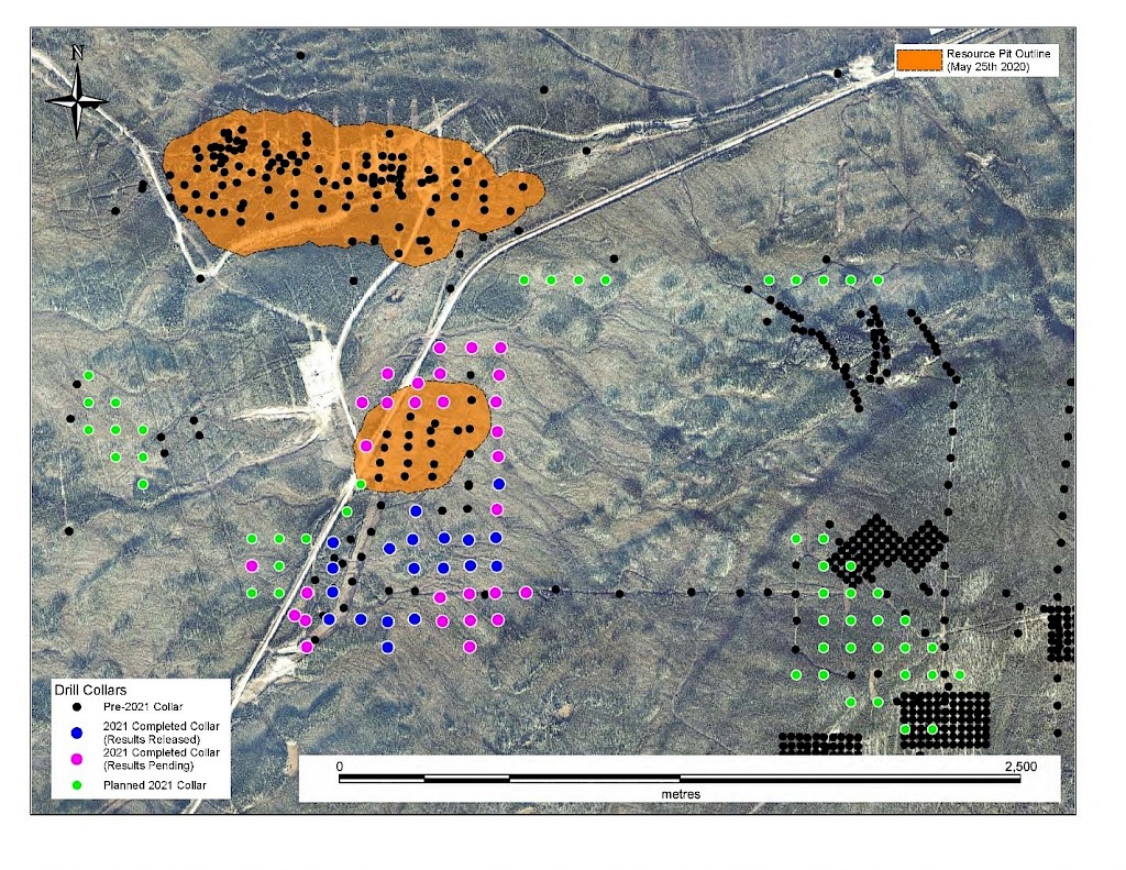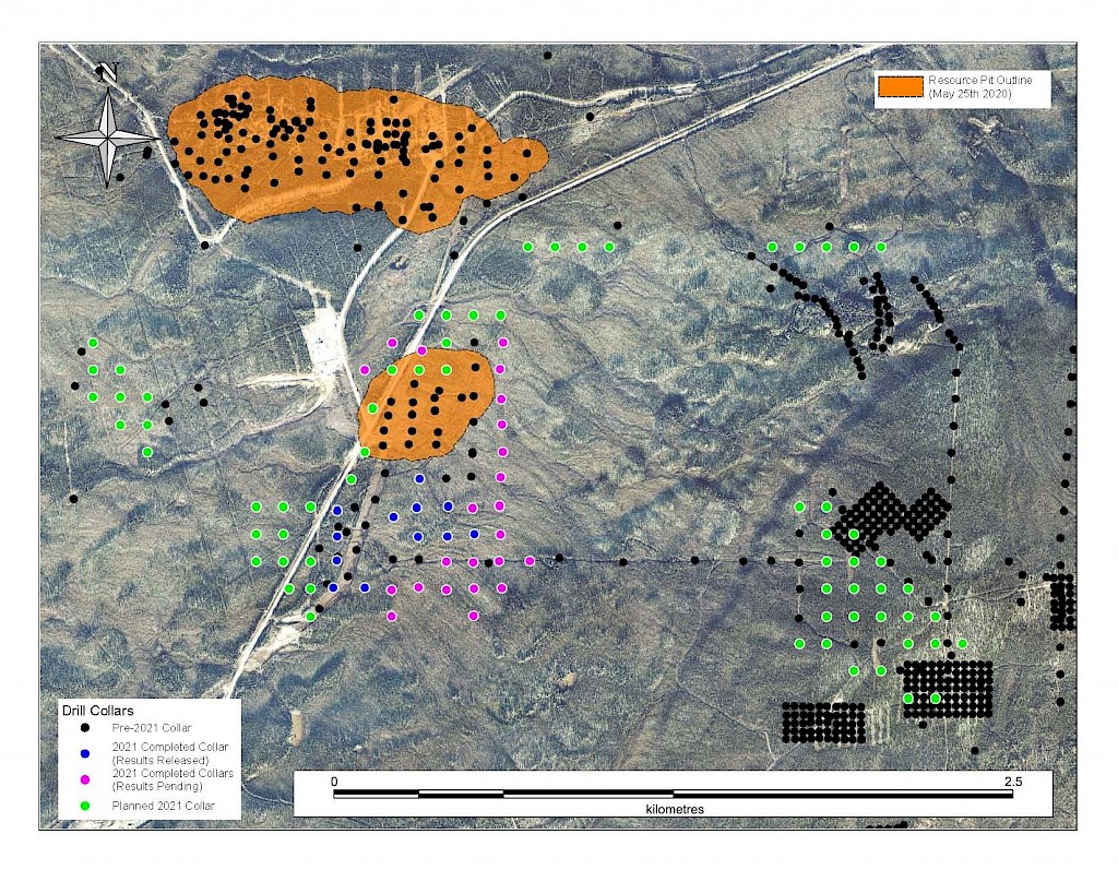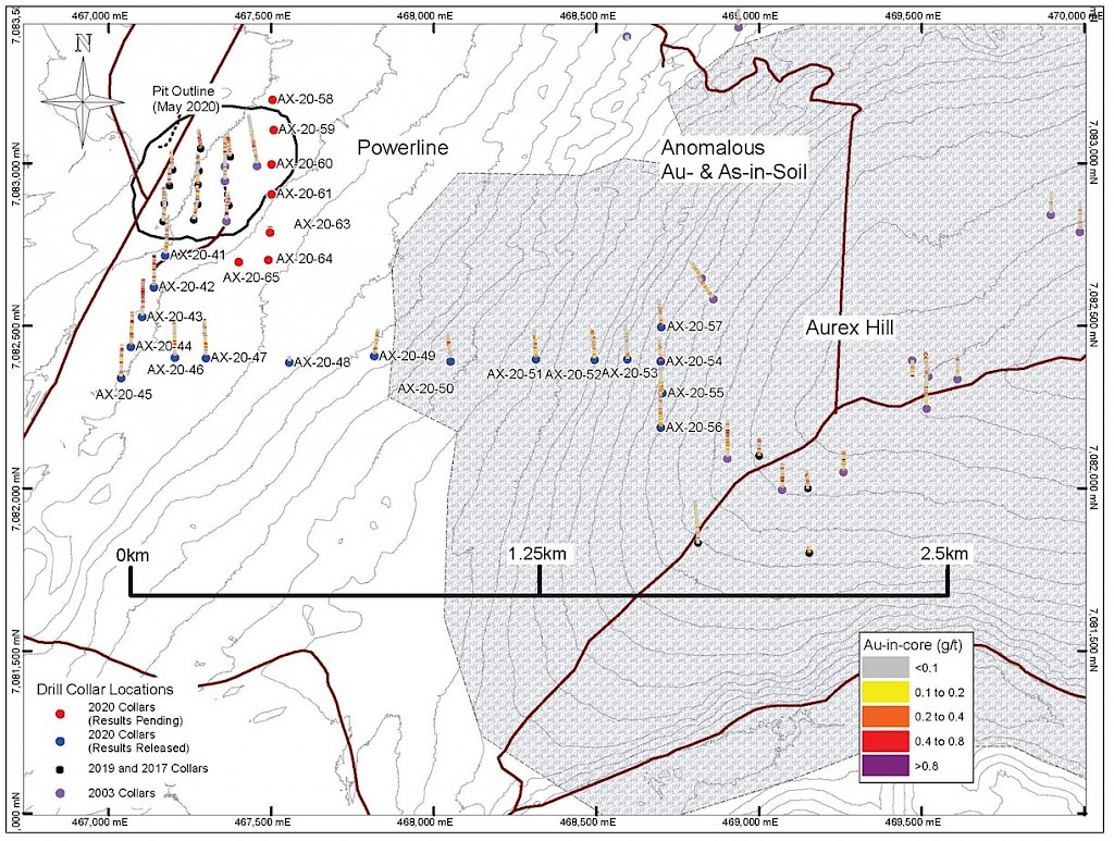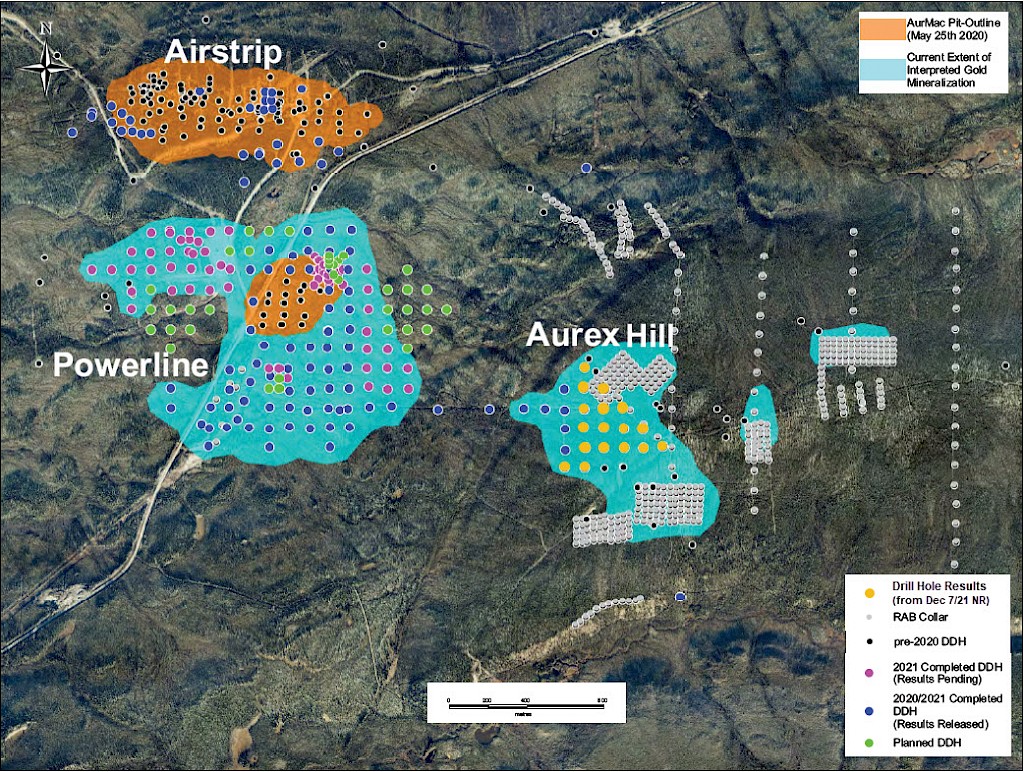 In 2021, step-out drilling continued in the Powerline and Aurex Hill Zones which successfully expanded the footprint of both zones. In Powerline, one-hundred and twenty-one (121) diamond drillholes (26,128m) were completed, and eighteen diamond holes (4,410 m) were completed on Aurex Hill. Upon the success of the 2021 drilling season, a resource update was planned for early 2022.