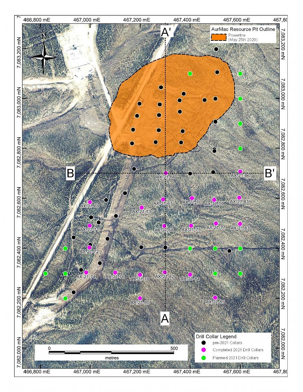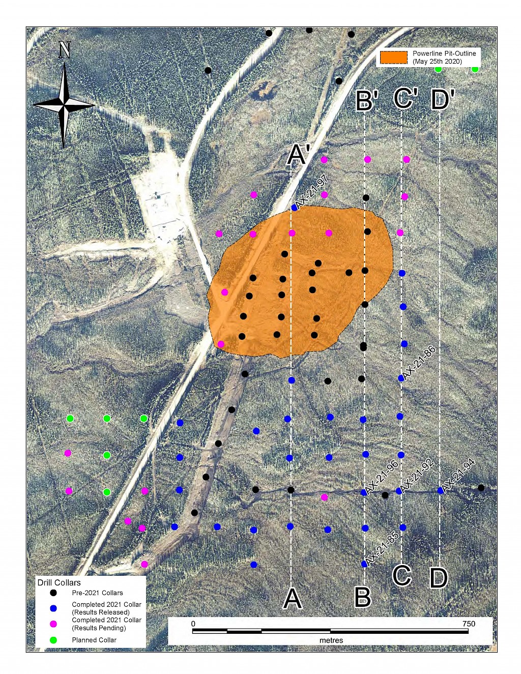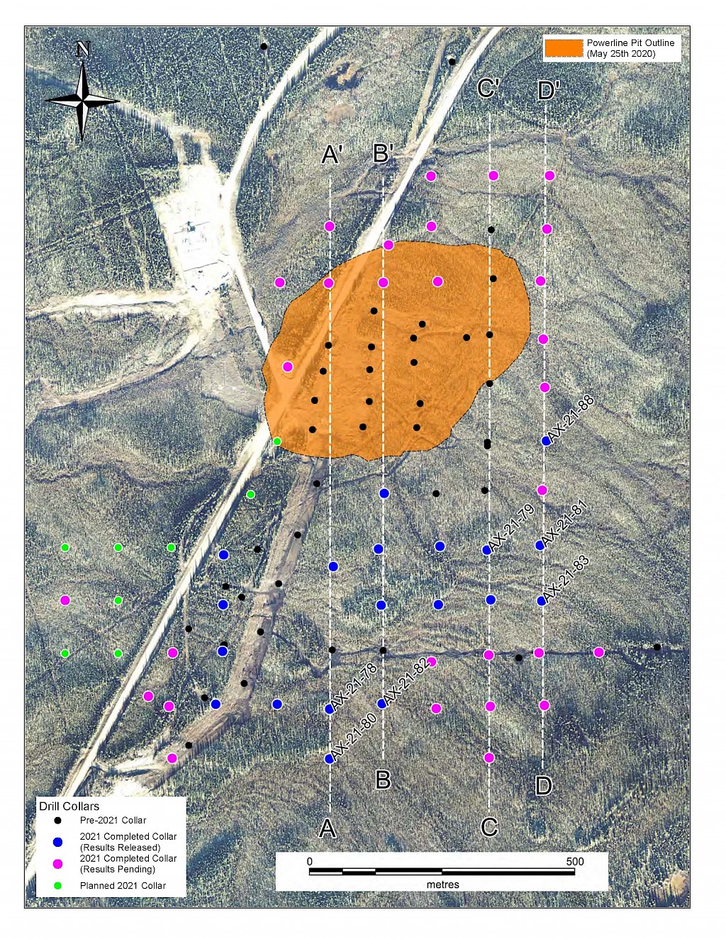 In 2021, step-out drilling continued in the Powerline and Aurex Hill Zones which successfully expanded the footprint of both zones. In Powerline, one-hundred and twenty-one (121) diamond drillholes (26,128m) were completed, and eighteen diamond holes (4,410 m) were completed on Aurex Hill. Upon the success of the 2021 drilling season, a resource update was planned for early 2022.