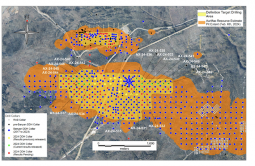 As of October 2024, Banyan has completed 180,000m of drilling accross 861 holes on the Aurmac property.